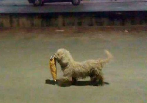 Un perro llamado «Max» fue apodado «Saqueadorcito«, pues fue captado en uno de los saqueos en Chetumal, Quintana Roo, con una bolsa de frituras en el hocico.